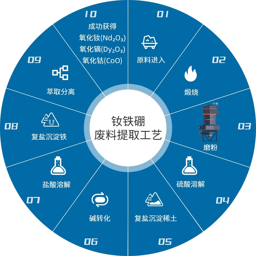 隨著釹鐵硼磁體在新能源汽車、風力發(fā)電、醫(yī)療設備等領域廣泛應用,釹鐵硼廢料的產(chǎn)量逐漸增加。而工信部發(fā)布的《稀土管理條例》征求意見稿中明確指出,要鼓勵以綠色環(huán)保技術對含有稀土的二次資源進行回收利用。
